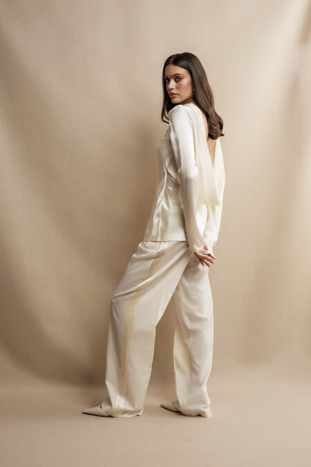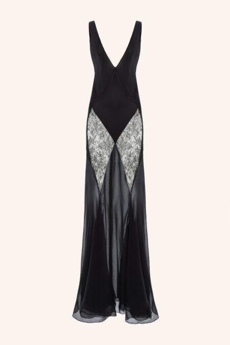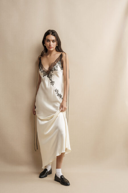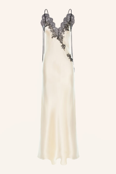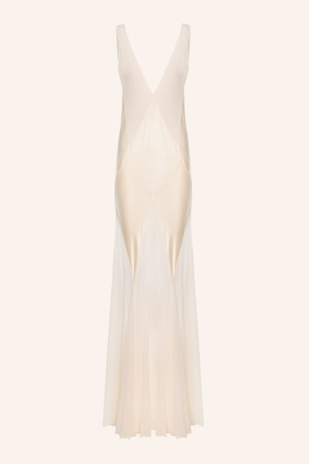 Satin and Lace Diamond Panels Cream Maxi Dress
